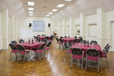 Main Hall 96 people seated at tables based on 12 tables of 8 people